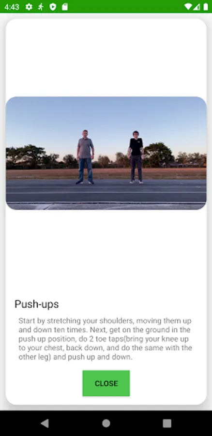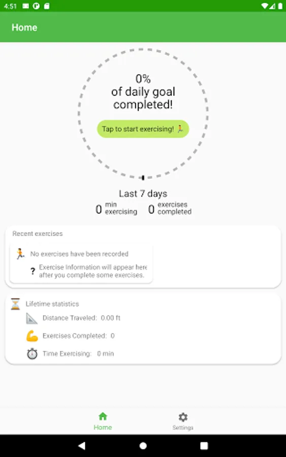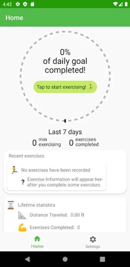 This app is designed to get you moving in new and challenging ways to keep your exercise routine interesting! When you open the app, you will first be asked a few questions to determine your preferences and goals. You will be asked if your fitness goals are more focused on Time, Distance, or Exercises (Number). You will also be asked to set your daily goal and how much distance you would like in between each exercise video.