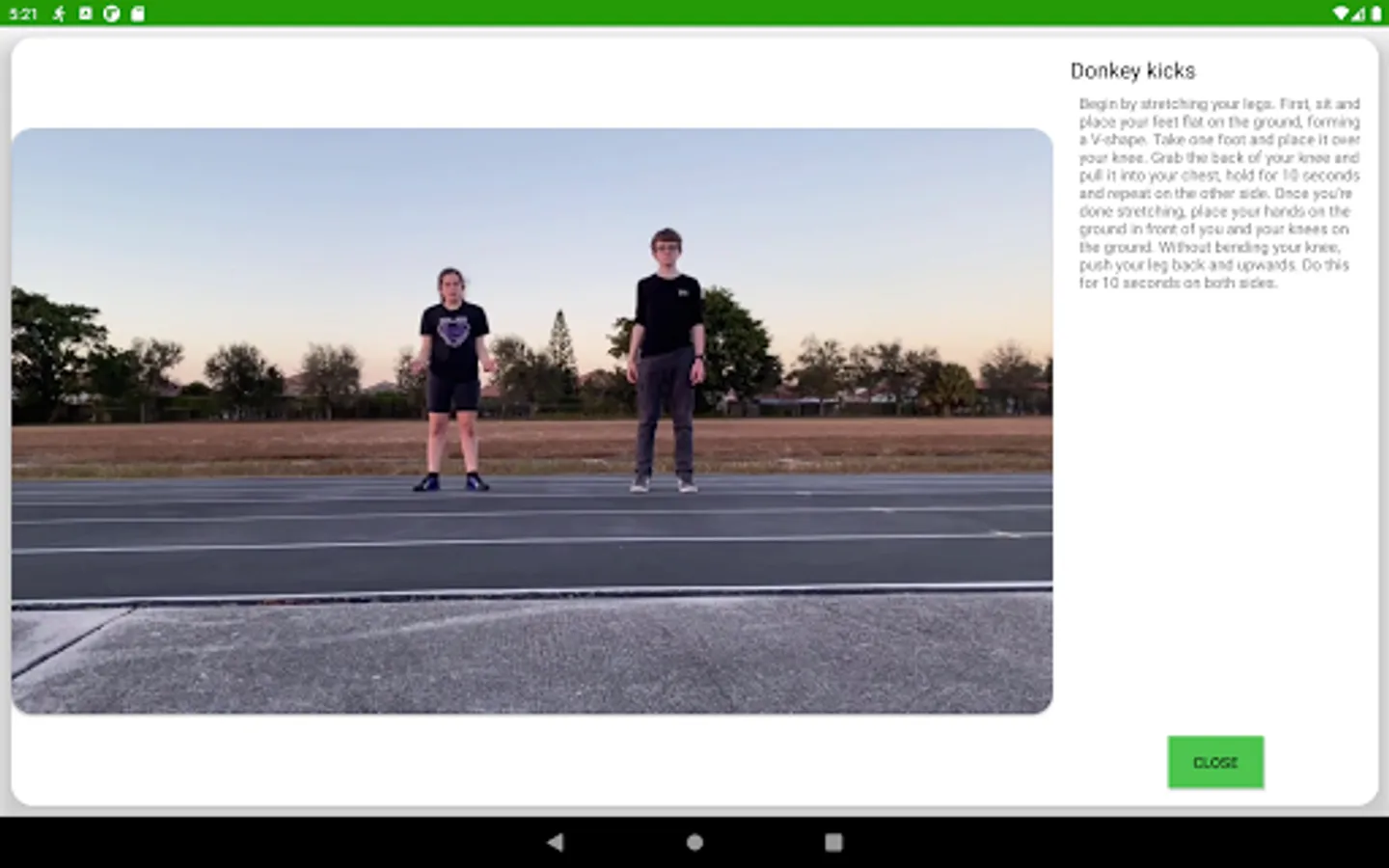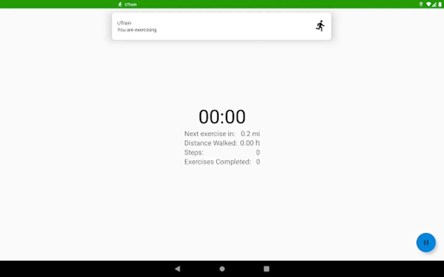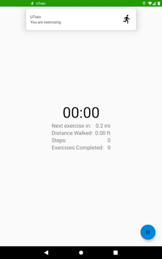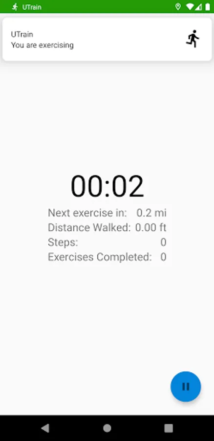 When you're ready to begin your workout, you will click "Start Workout". Then, using the location services on your Android device, the app will track your walking and/or running distance. Once you reach the desired exercise distance (which you set when you first opened the app and can change, later, if you desire), then a workout video will open on your phone screen and you will need to complete the workout shown in the video. Once you have completed the exercise, you will continue walking/running until the next video appears and continue until your workout is complete (based on the goals you set, which can also be changed later).