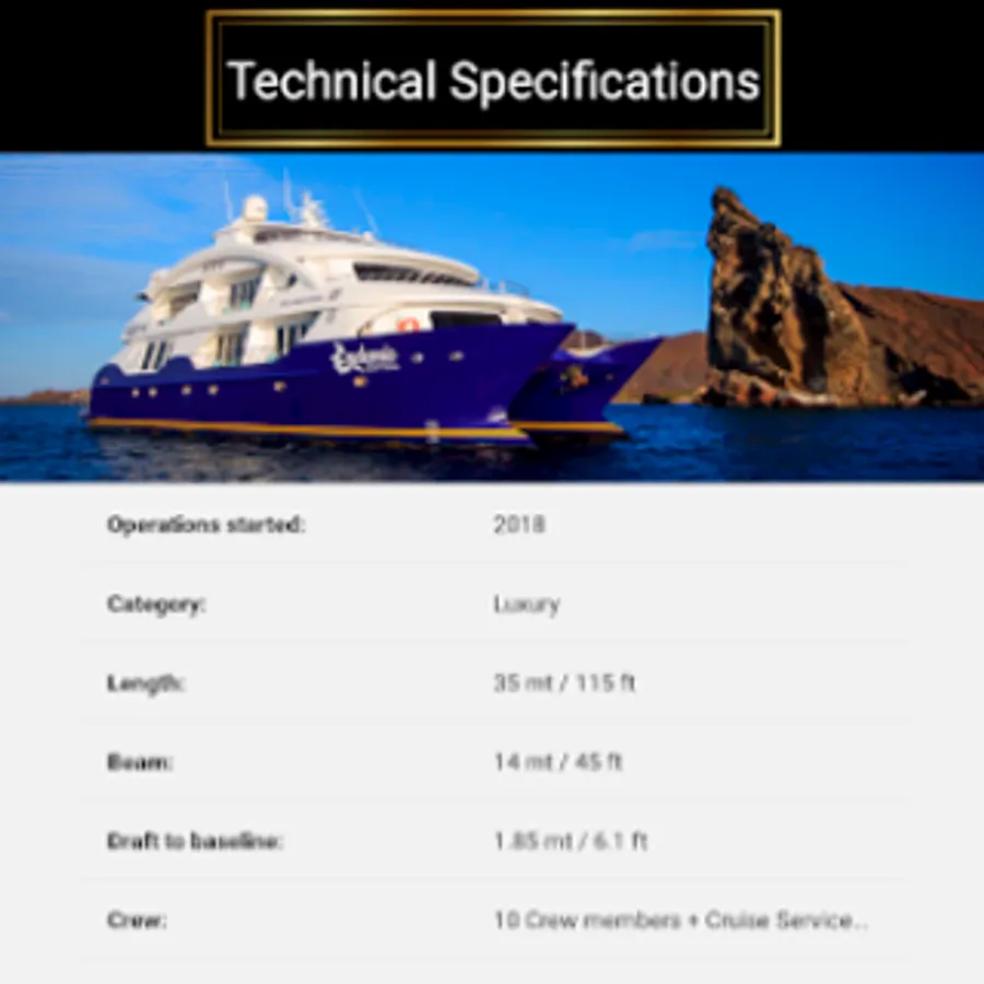 Muestra informacion del yate Endemic que opera en las islas Galapagos de Ecuador. Muestra detalles del mismo asi como los servicios que ofrece