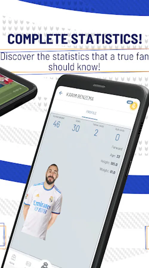 The Real Madrid app offers you profiles of every player, information about the matches played, points/goals scored and much more besides.