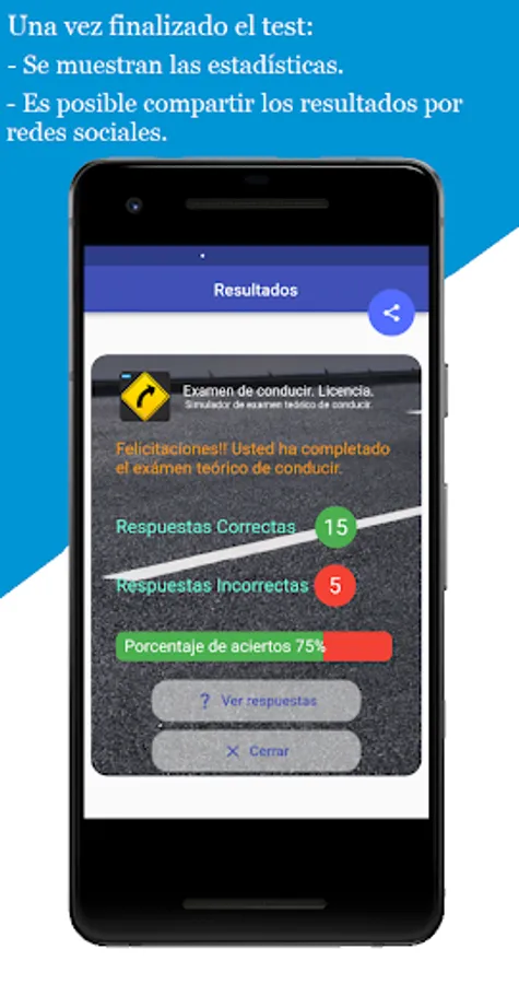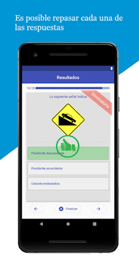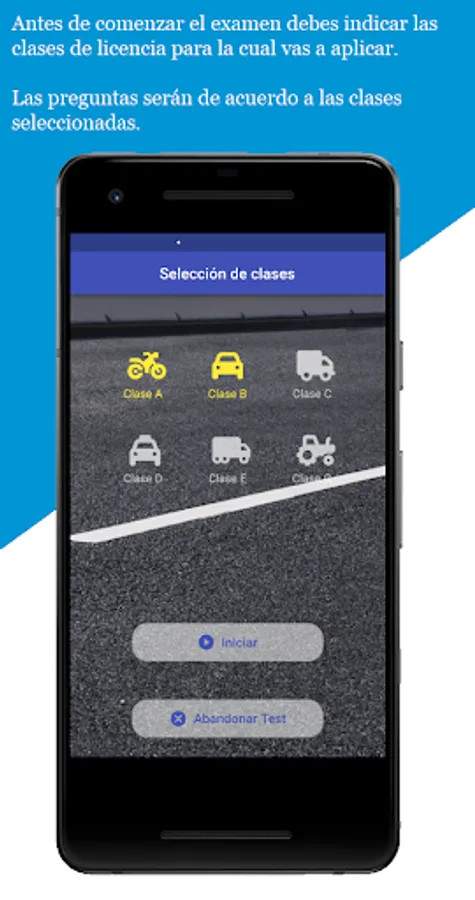 The application allows you to take the driving test in a similar way to those that are taken in the process of obtaining or renewing the driver's license in Argentina.