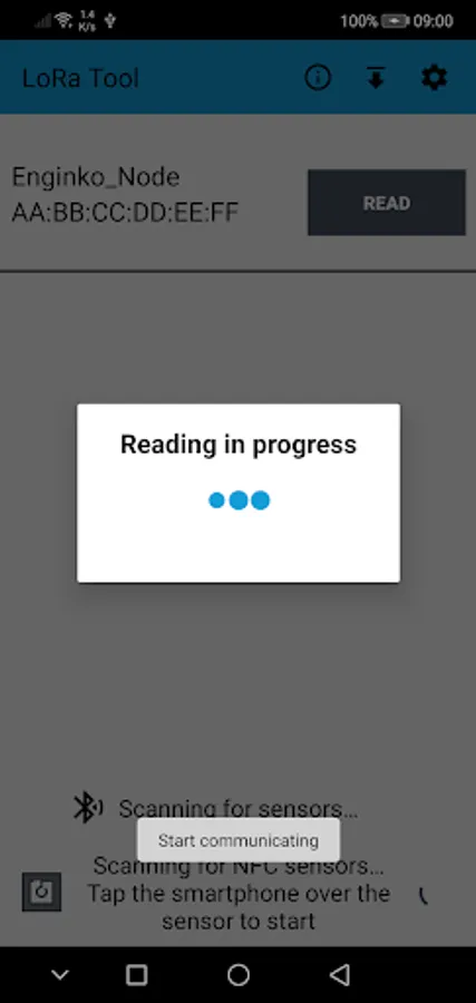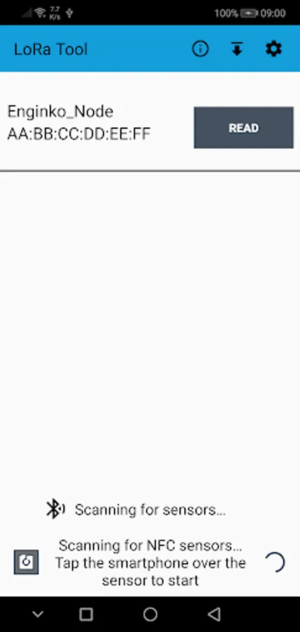 With the LoRaTool application on your phone you will be able to manage Enginko devices based on LoRaWAN® technology via NFC and Bluetooth, you will be able to configure LoRaWAN® credentials and other preferences, read data from sensors, update firmware, enable and manage passwords.