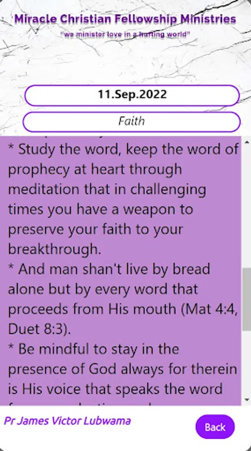 Miracle Christian Fellowship Ministries (MCFM), is a pentecostal church situated in Nangabo, Kasangati Town Council, Wakiso District. It was started on 4th August 1996 by Pastor James Victor Lubwama.
