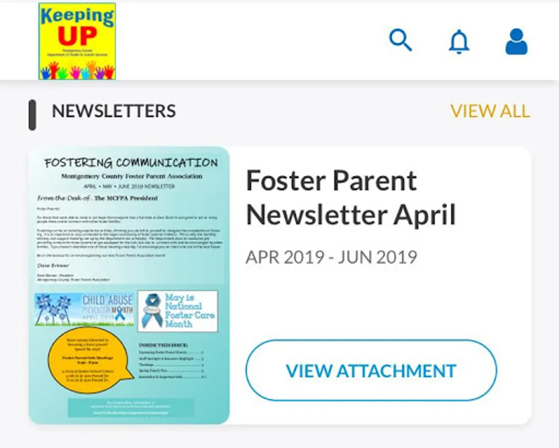 The State of Maryland Independent Living Services are available to youth ages 18 to 26 in out-of-home placement and are designed to prepare youth to transition from foster care to self-sufficiency. Under this mandate, the Montgomery County Maryland Child Welfare Services (CWS) determined that a mobile application was needed to better serve the CWS transitioning youth population (ages 18-26 who are in foster care or who have transitioned from foster care) and assist them in moving towards independence. The purpose of obtaining this mobile application (Keeping Up) is to provide accessibility to an existing base of users who are currently within and/or have aged out of the foster care system and serve as a system navigation tool that helps these youth identify resources, supportive services and crisis intervention based on where they are living in Maryland. Additionally, this mobile app would be accessible to the foster parents of these youth as well as their social workers within Child Welfare Services to allow convenient interfacing and accessibility to community resources and services.