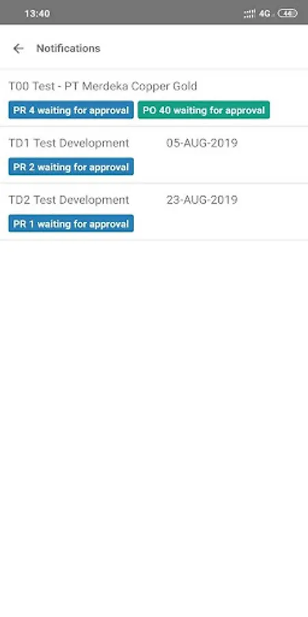 Users whose access has been set up can use this application to get notifications, do a review or do an Approval of Purchase Requisitions created by the Admin.