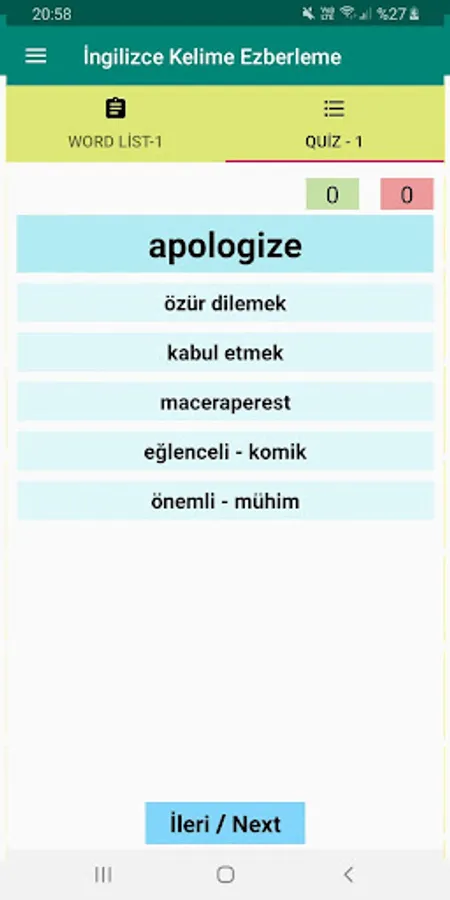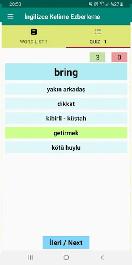 Words were selected in accordance with the Meb curriculum. This application was created to be an alternative resource for students and individuals who want to improve their English.