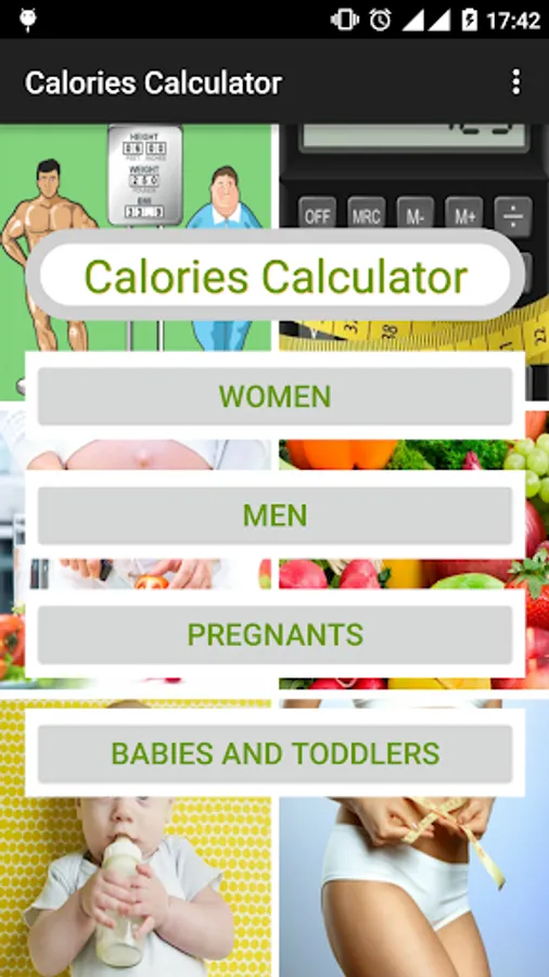 If you have children, calories calculator helps you also determine the daily calories need of your little one. Just choose the right category you're in (women, men, pregnant, for my baby) and get started! If in doubts, use our helper!