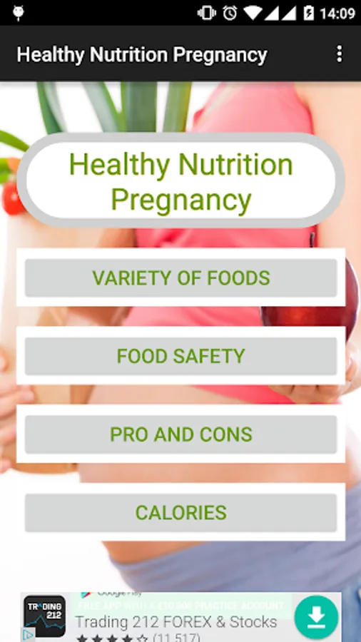 Healthy Nutrition is essential for your baby's well being and development. That's why Healthy Nutrition Pregnancy comes with an overview of the variety of foods you should eat while pregnant. It also offers you a daily calories calculator, meal example and tips and tricks.