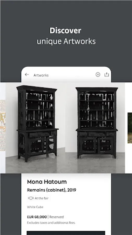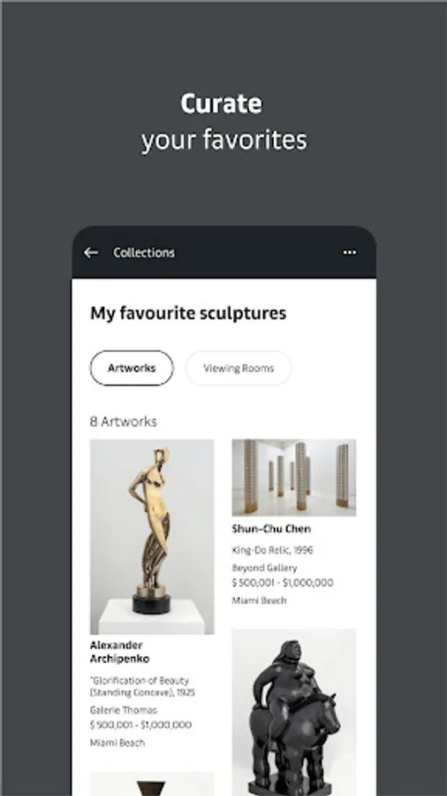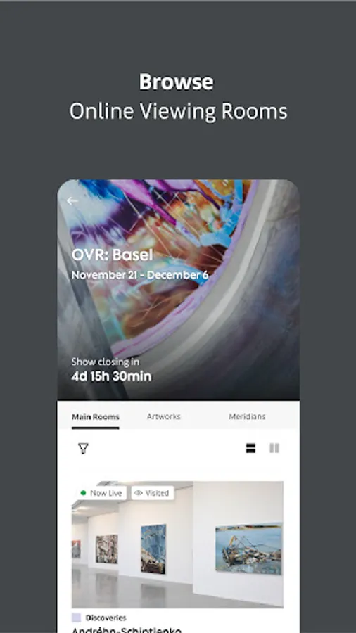 When live, the app also features our Online Viewing Rooms. You can browse artworks and start your own collection.