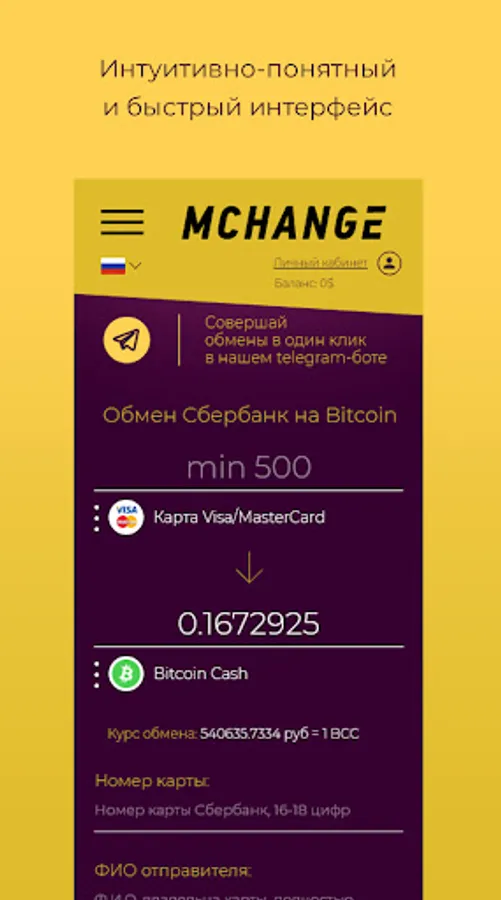 - Ability to add payment details for their further use in subsequent exchange operations.