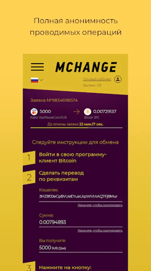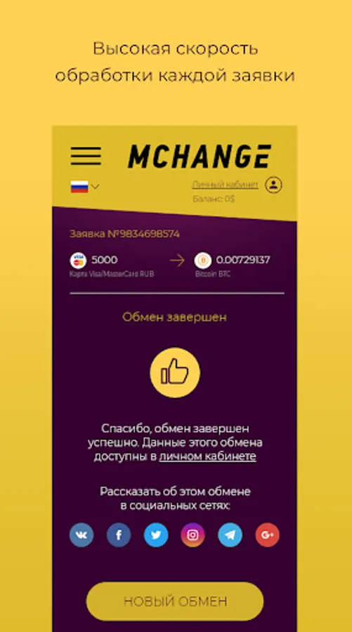 Just select the currency that you are interested in buying, then click on the choice of the currency that you will give, and you will see all the options for which you can purchase the asset of interest. The application will immediately show you the exchange rate and break the entire exchange procedure into a few simple steps. Your task is simply to follow the instructions that will come from the system. After you make the payment, the application will be processed. The average processing time for any conversion request does not exceed 15 minutes.