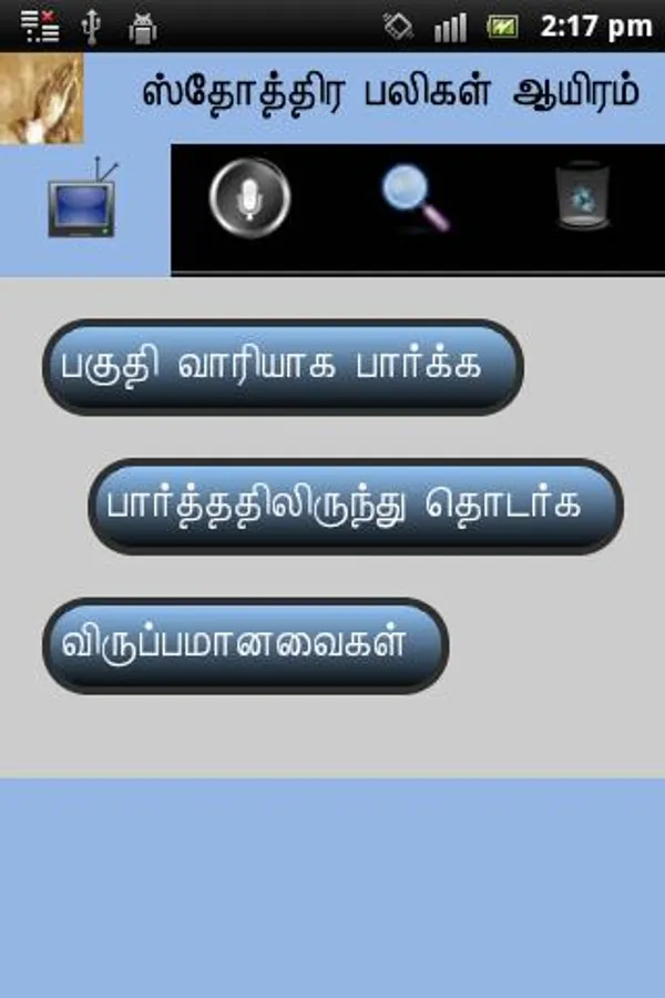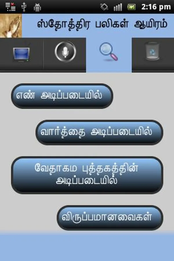 1000Praises _Tamil - "Sthothira Paligal Aiyiram" (Tamil) is a smart andriod application that helps the people to read / record and search the praises from bible. This application having the below modules and sub modules.
