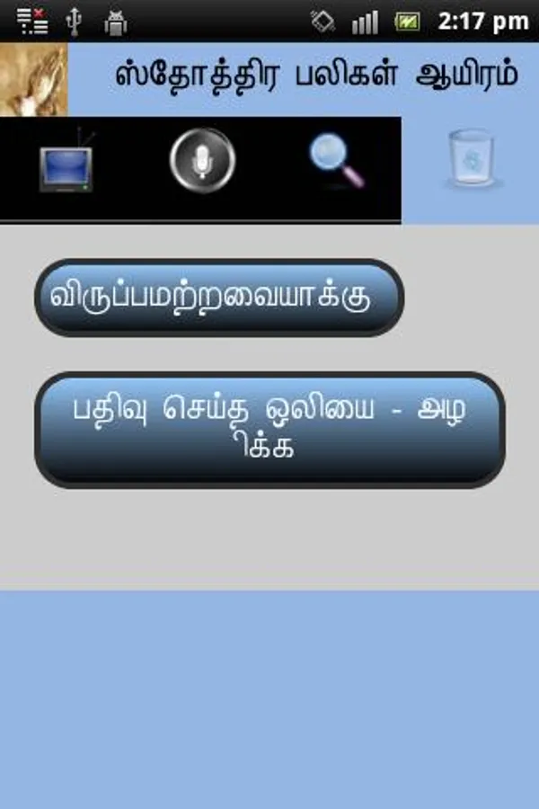 Using this module user can listen and view the praises as a power point presentation. For listening the praise’s user must record their voice on the corresponding praise. To record the praise user can use the 'Record' option. Recorded voice will be store in the external memory.