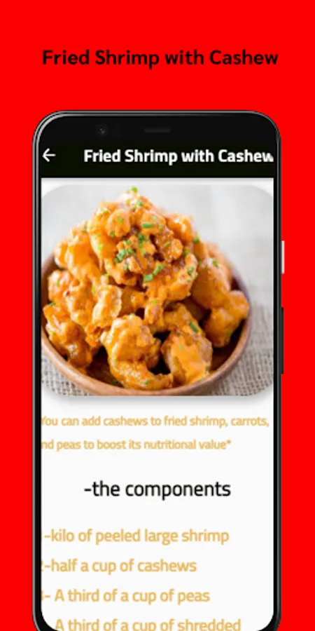 For seafood lovers, our app offers the Fried Shrimp with Cashew, a dish that combines the sweetness of shrimp with the crunch of cashews. With its unique flavor profile and crispy texture, this dish is sure to be a hit with anyone who loves seafood.