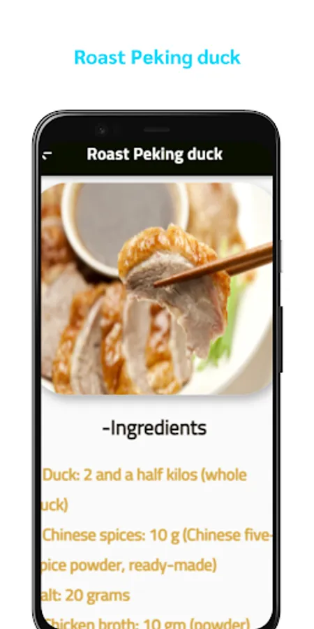 No Chinese cuisine app would be complete without the Roast Peking Duck, a dish that has been enjoyed by emperors and commoners alike for centuries. Our app provides you with a detailed recipe for this iconic dish, along with tips and tricks for achieving the perfect crispy skin and succulent meat.