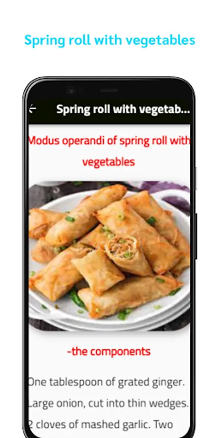Next on our menu are the Spring Rolls with Vegetables, an appetizer that is both healthy and delicious. With its crispy exterior and savory filling of fresh vegetables, these rolls are perfect for any occasion. Our app provides you with a variety of dipping sauces that complement the flavor of the rolls, making them even more enjoyable.