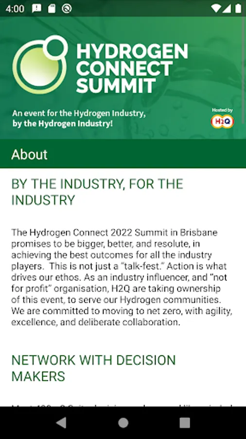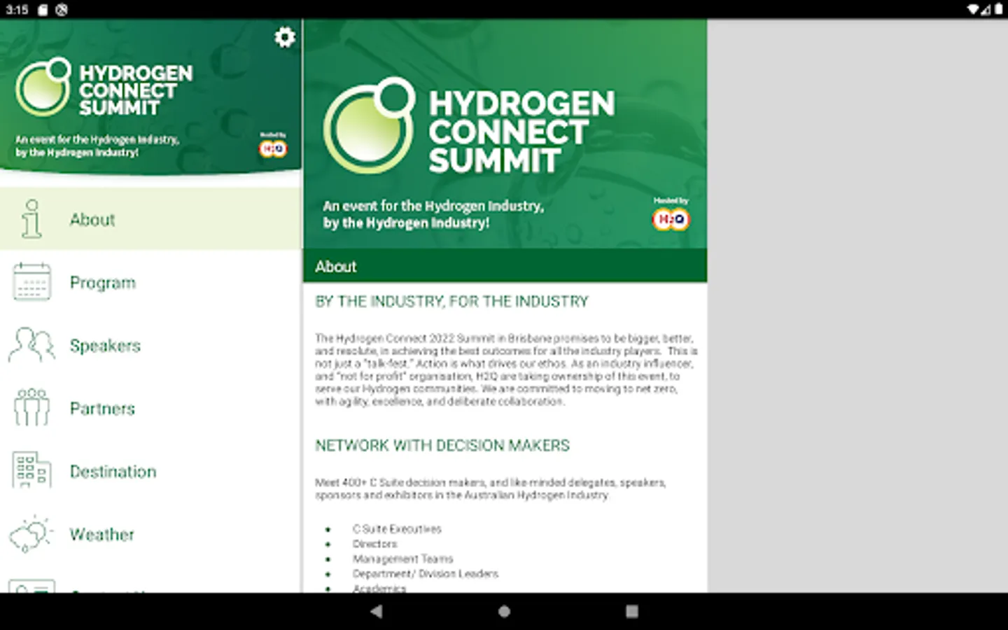 The Hydrogen Connect Summit event app offers powerful communication technology that connects people, places and information.
