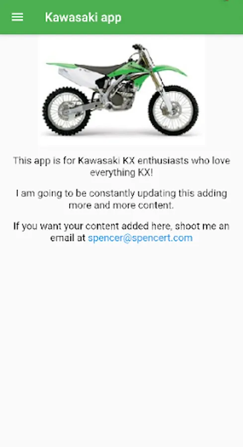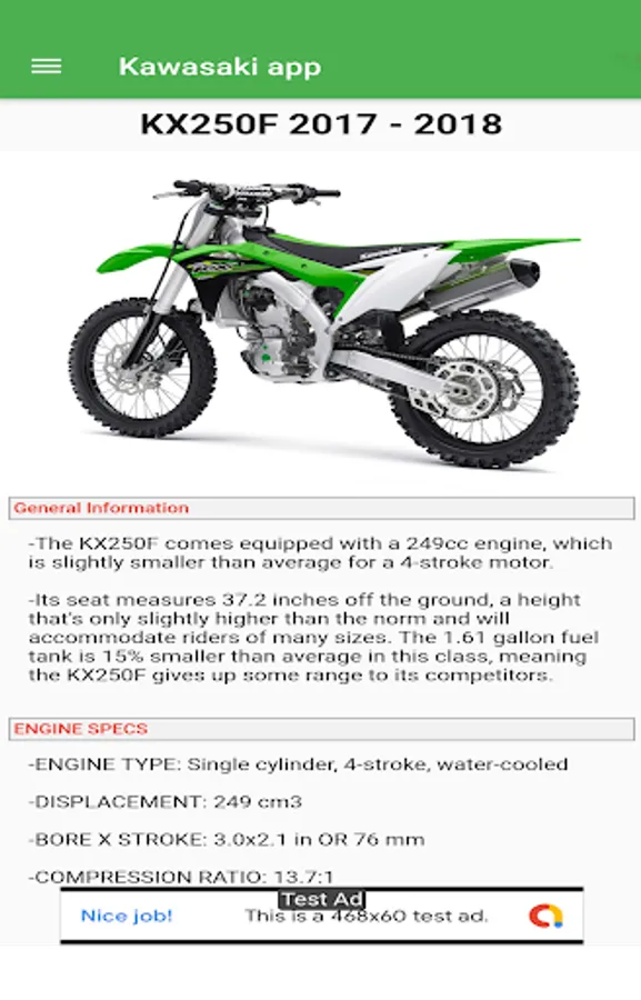 This is a great app for any motorcycle and dirt bike enthusiast, especially for those who love Kawasaki and the KX line of motorcycles. It also helps get you familiar with bikes and the changes that come with each new bike.