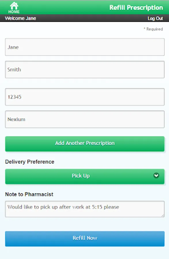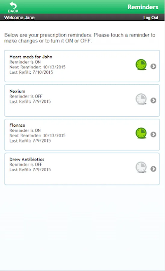 - Set text and email reminder messages to help you know when it is time to request a refill.