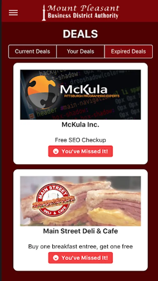 The Mt. Pleasant Business District Authority presents ShopMP, the app for Mt. Pleasant shopping, business, deals, events, etc. A directory of every business in Mt. Pleasant, and access to all the specials and deals they offer - ShopMP is the go to application for discovering Mt. Pleasant.