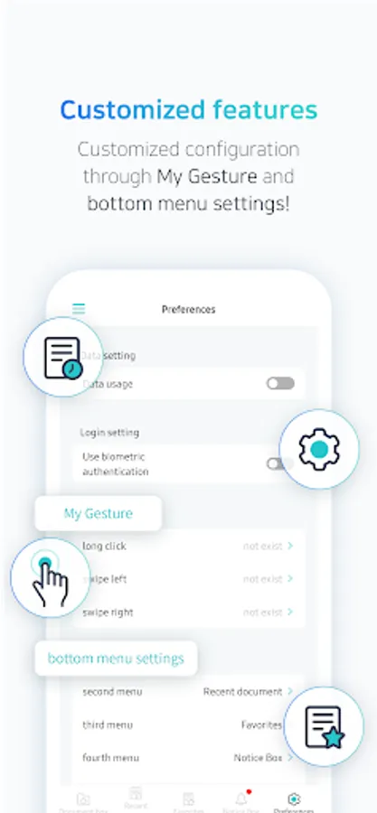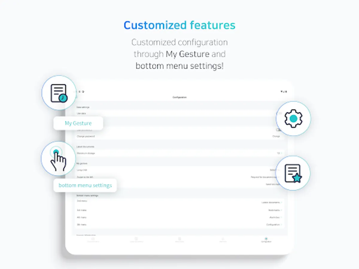 ⑦ Convenience features: My Gesture, Favorites, Recently Viewed Documents, Bottom Menu Settings