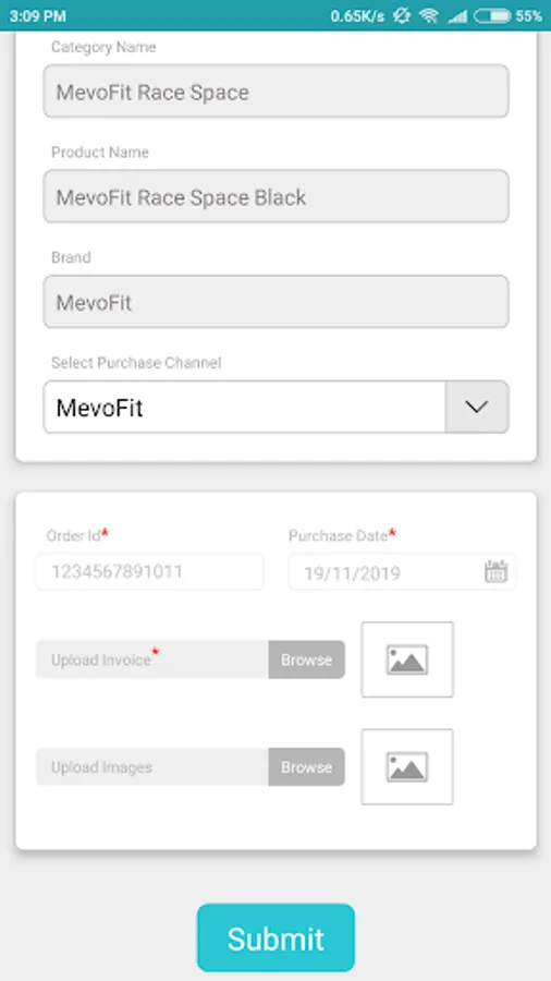 3. Upload purchase proof (capture it with your phone) & Insert invoice details.