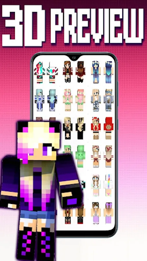 This skinpack includes over 5000 girl skins like cute, baby, kawaii. If you are looking for girl skins for minecraft for free, or want to find a popular skin to surprise your friends, then this app is for you.