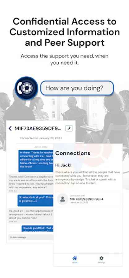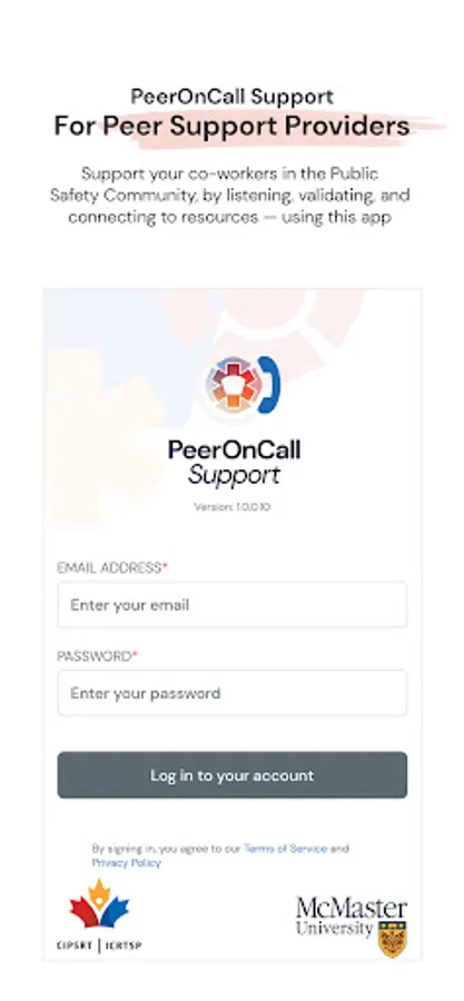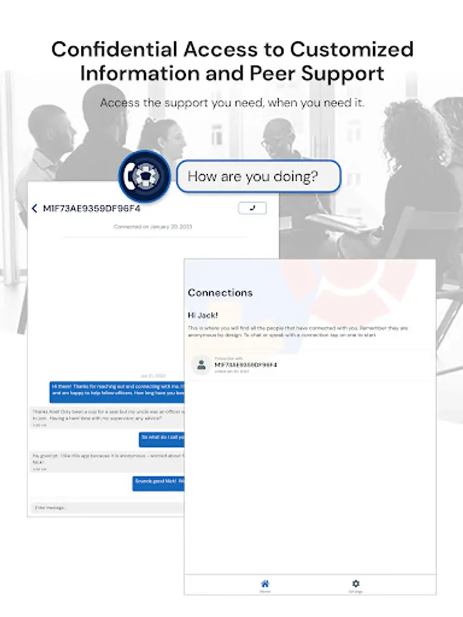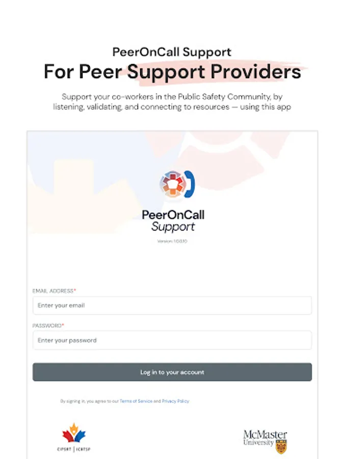 PeerOnCallSupport is a tool for peer supporters to connect with PeerOnCall app users from the public safety community. Trained peer support providers in participating organizations can use the app to create their profiles, indicate their availability, and track their peer support encounters. The app enables private, secure connections with PeerOnCall app users who reach out for peer support via text or phone.