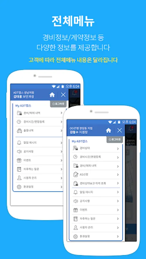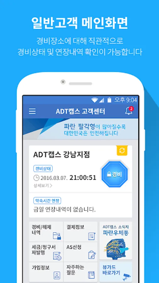 Technology to keep well-being The 'ADT Caps Customer Center' provided by SK Shields is a service that provides security information and contract information anytime, anywhere through a smartphone to customers using the ADT Caps security service.