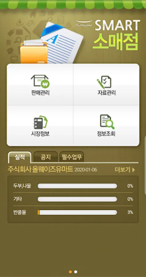 As an app to support the activities of Pulmuone Merchant's retail sales staff, it provides sales management (delivery plan, inventory investigation), market information (VOE, competitive index), and information inquiry (delivery history, sales performance inquiry).