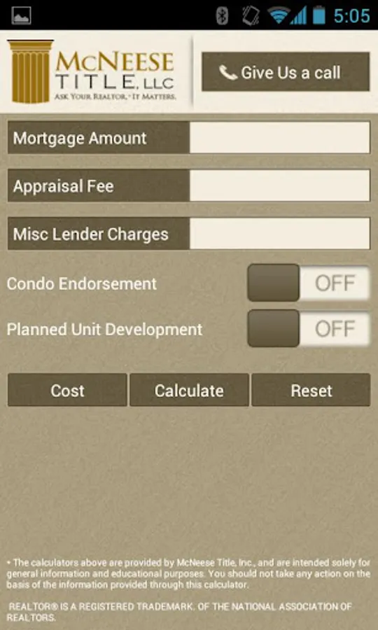 *The calculators above are provided by McNeese Title, Inc., and are intended solely for general information and educational purposes. You should not take any action on the basis of the information provided through this calculator.