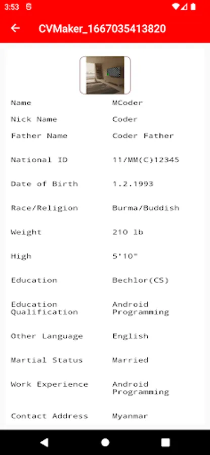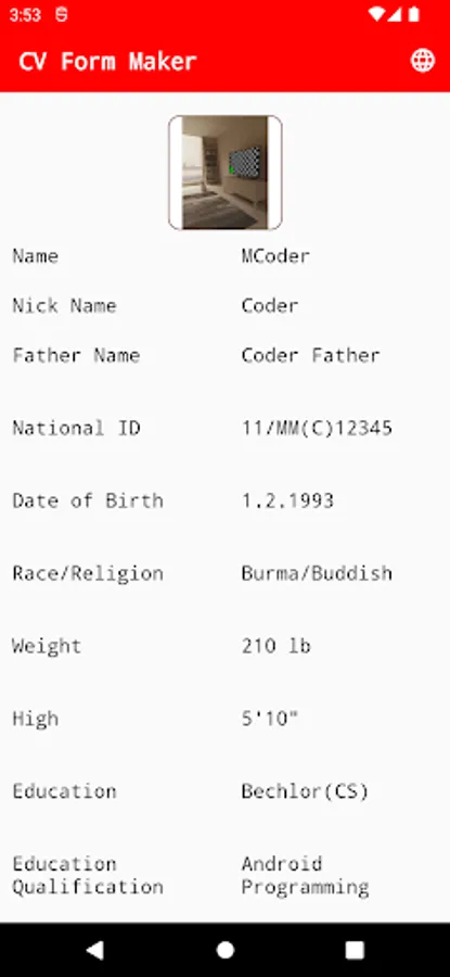 CV Maker App is designed to make CV Form. This app is designed for Myanmar People.