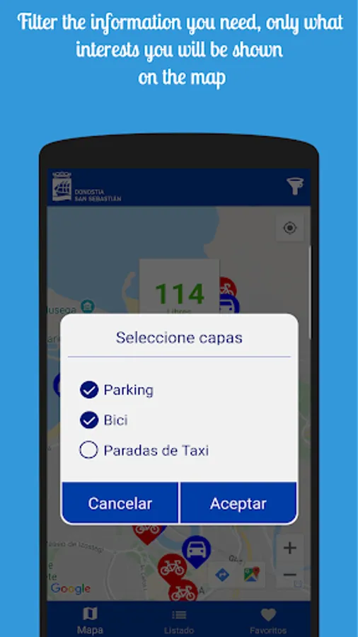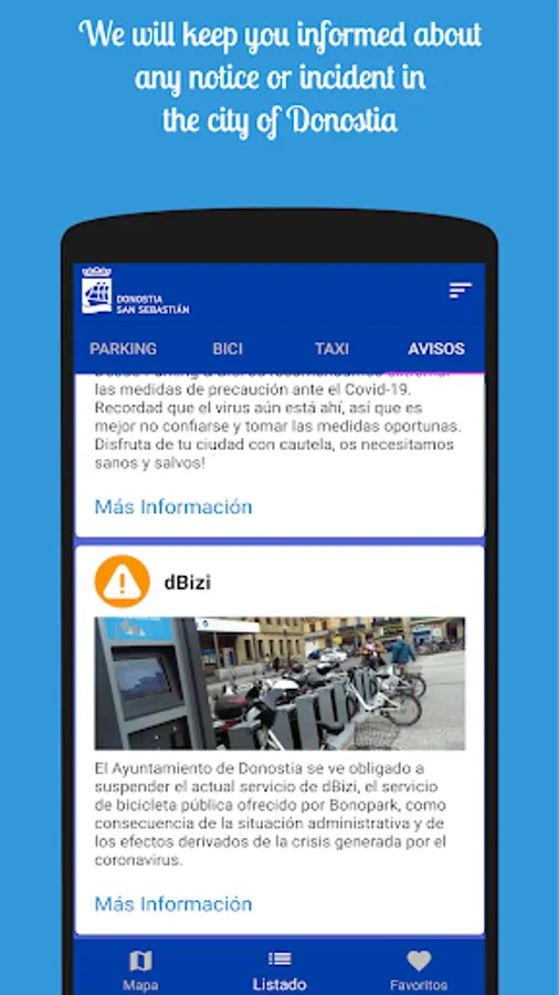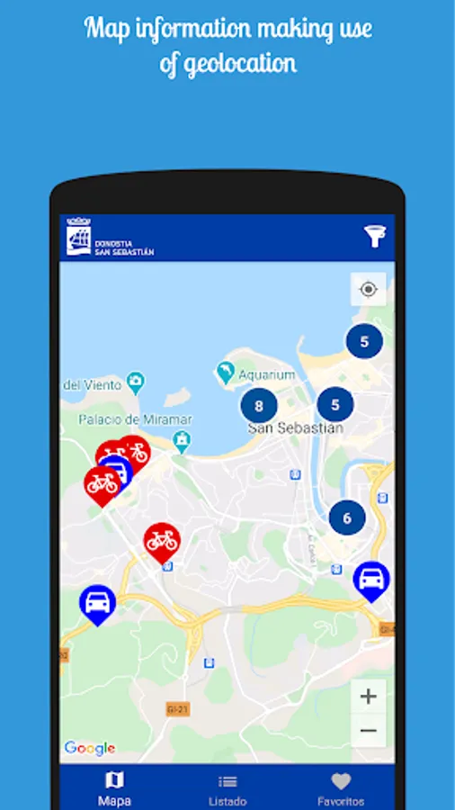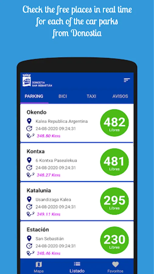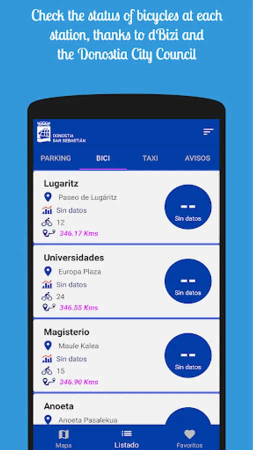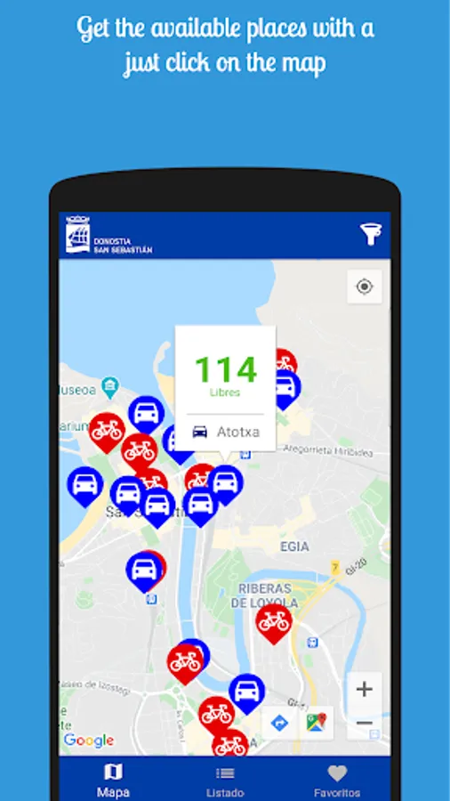 Parking And Bike is designed and thought only to facilitate access to this type of information, without advertising or intermediaries, only by accessing the public data of the San Sebastián/Donostia City Council and informing you of any incident on the network, in order to prevent any inconvenience to the user.