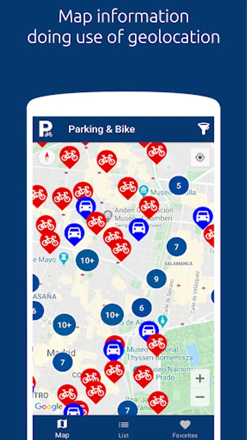Parking And Bike is designed and thought only to facilitate access to this type of information, without advertising or intermediaries, only by accessing the public data of the EMT and the Madrid City Council and informing you of any incident on the network, in order to prevent any inconvenience to the user.