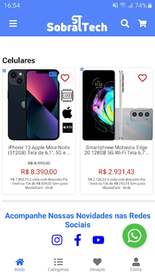 By definition, SobralTech is a retailer specializing in technology and information technology. But, in fact, it is much more than that, SobralTech is today one of the largest specialized retailers. It's easy to see why, we have our own technical assistance, exclusive brands, more than 5,000 high quality items. Download the SobralTech App today and have an easy, fast and secure shopping experience, being able to buy products such as smartphones, TV's, Audio, notebooks, Tablets, Gamer Machines and Small Appliances in the application.
