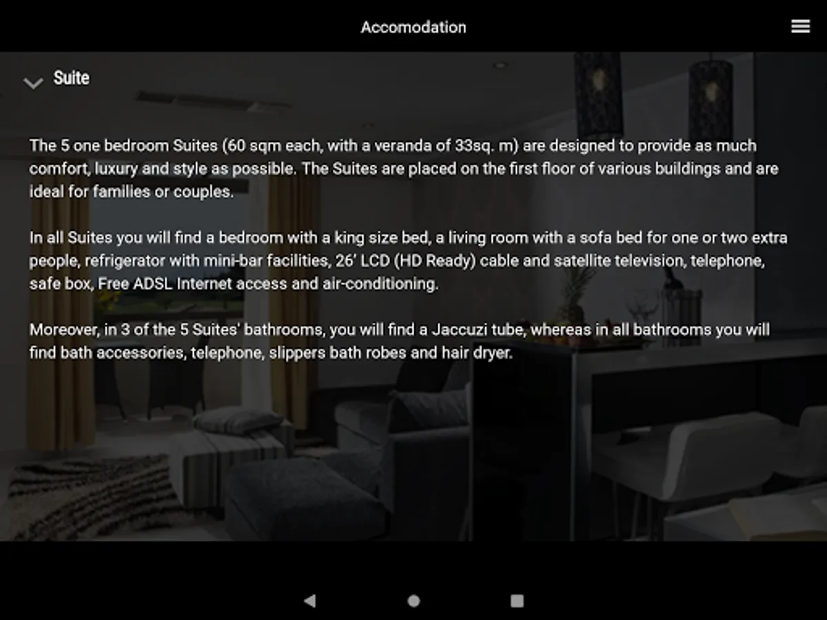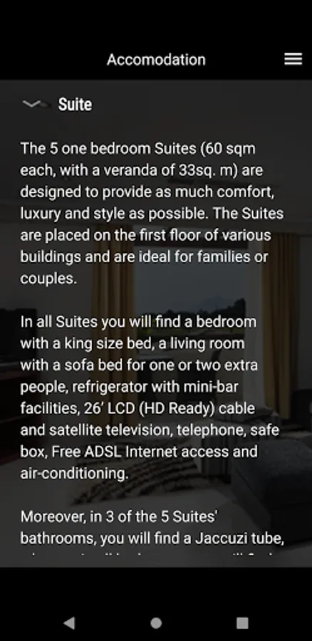 Moreover, it shows the area's weather and gives you the link to the official booking engine site of the hotel.