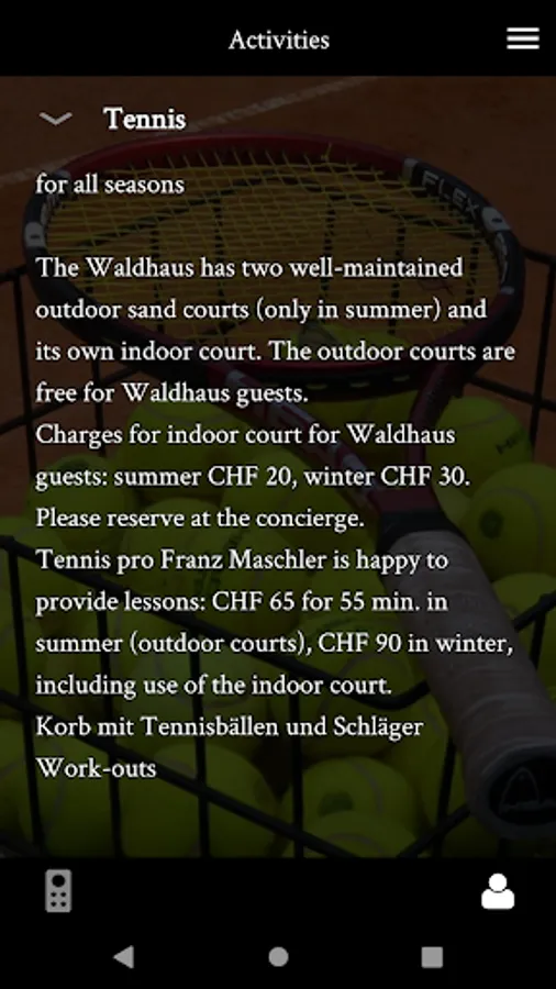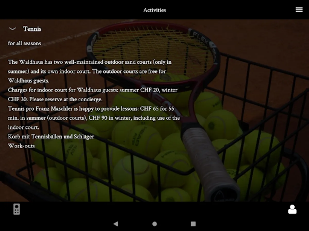 Waldhaus Sils located in the village of Sils Maria, Switzerland through your mobile device. With this innovative application you may navigate through all facilities and services of Waldhaus Sils, or explore the astonishing natural sites of the region. Get instant access to events calendar and to contactless remote control for the room TVs.