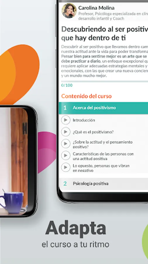 Enjoy a personalized experience with our online psychology and personal development courses thanks to the close relationship you can have with the coach or teacher of the courses. Thus, depending on whether the certified online courses are health, wellness, personal relationships, science, psychology, personal development or mindfulness, you will take the certified online courses with a professional in the field and with complementary materials.