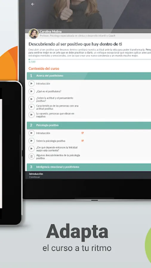 Take advantage of our online courses app in all the complementary material and evaluate your knowledge in each module of our online courses in psychology and mindfulness, with tests, tasks and audios to verify that you absorb everything from your online courses in health, science, psychology, personal development, etc.