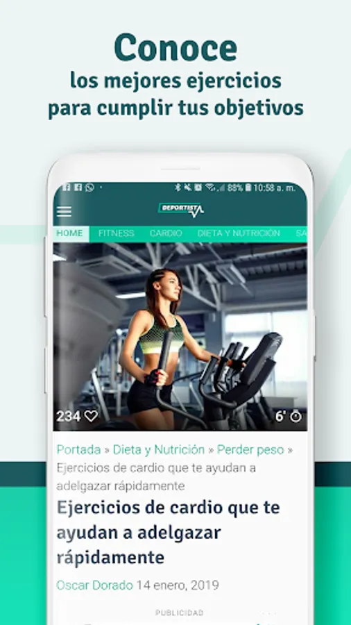 In this health section you will be able to increase your pace and resistance, and avoid the joint impacts derived from sports practice and burn fat, if you combine it with good nutrition and exercises.
