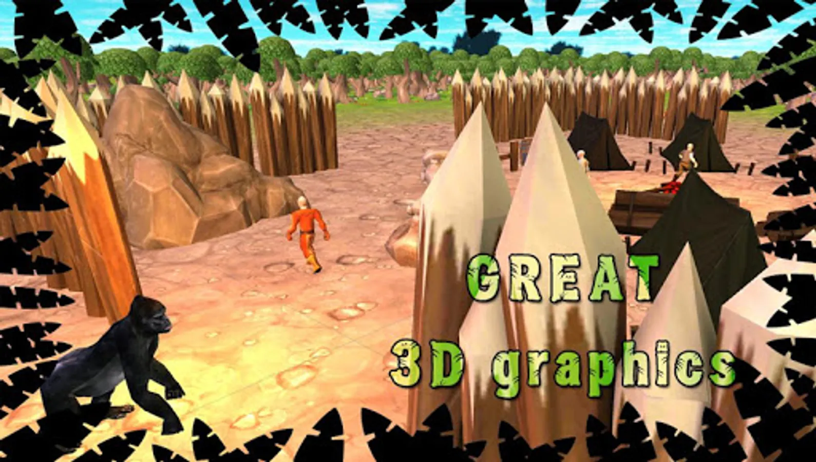 Humans have established a fort in the middle of the jungle, and each has a specific function: cutting trees, explore the area, stand guard, making food ... but nobody can do anything against a big gorilla with a huge force.