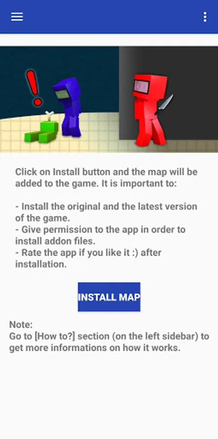 This app is an auto addon installer for Minecraft which installs, Among US v2 MAP for MCPE