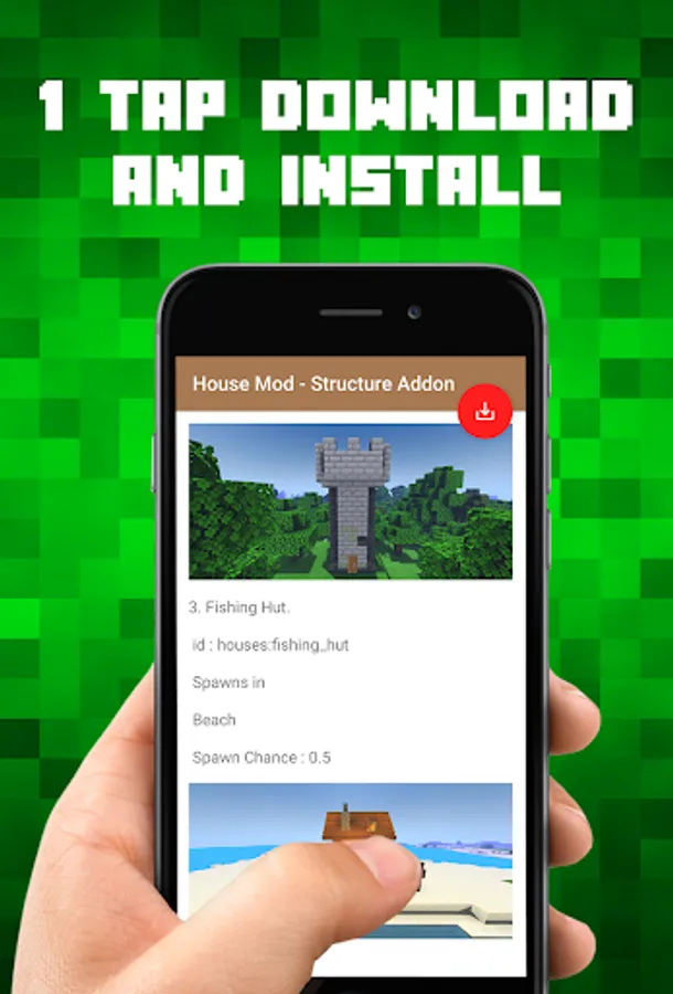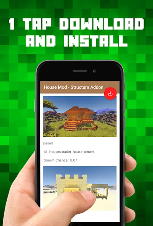 This House Mod Structure Addon for Minecraft PE application help you download & install Just Structure Addon into your Minecraft Pocket Edition game. Forget all those File Explorer or BlockLauncher, and get things done faster and easier with our 1 tap installer.