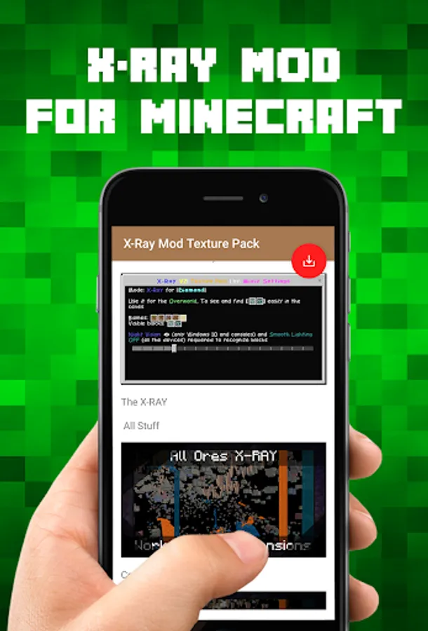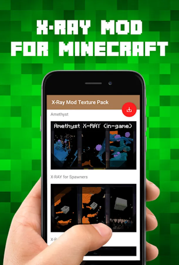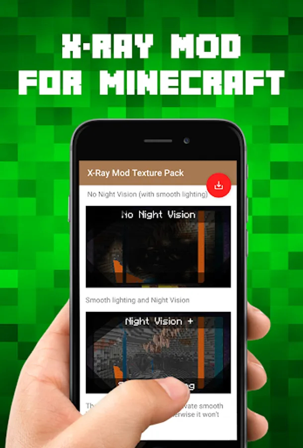 This X-Ray Mod Texture Pack for Minecraft PE application help you download & install X-RAY Texture Pack into your Minecraft Pocket Edition game. Forget all those File Explorer or BlockLauncher, and get things done faster and easier with our 1 tap installer.