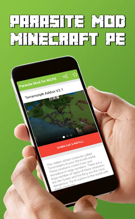 Welcome to Parasite Mod for MCPE! This APP allowed you to easily download & install Terramorph Addon to your Minecraft Pocket Edition in just 1-Click!