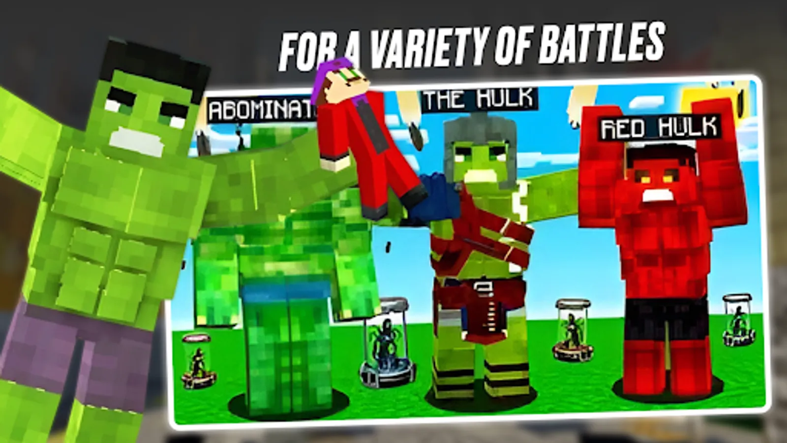 By getting a Hulk Addon look, your health will instantly increase by several hundred times. App called Hulk mod for Minecraft PE is designed to give multiplayer a strong πͺ and confidence by increasing individual games resources. π₯ In all cinematics, the creature is green in color. Since the game for Pocket Edition is not quite real, the addons we developed provide a large color palette π images of Hulk Minecraft Mod. In addition to the changed skin color, the Mod Avengers Superheroes will give you inventory, themed clothing and additional abilities. π‘ You will be able to color your fight with bright colors and animations with π§ Superhero Mods for Minecraft Pocket Edition. π€©