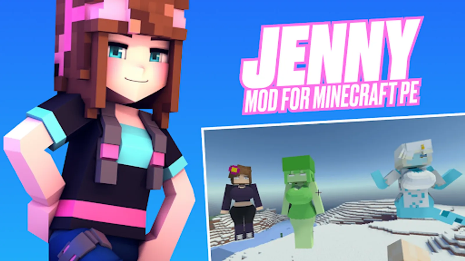 ❗️Jenny Mod for Minecraft PE is a product of our company, which has nothing to do with the Mojang studio, which owns the copyright to the game. This means that Girlfriend mods for MCPE are not approved by this studio and belong to the unofficial products of this platform.