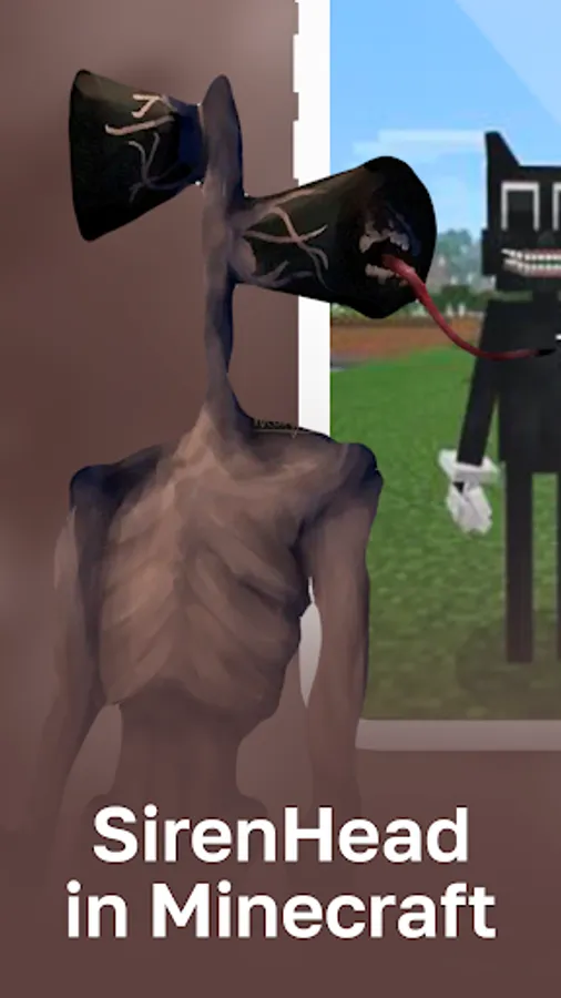 Siren Head Minecraft Pocket Edition is an addon / mod with an updated mystical monster that terrorizes people all over the world and creates traps for them. Its distinctive feature is the presence of several sirens instead of a head. Thanks to this strange feature, Monster – Siren Head horror Minecraft - can imitate the voices of people you know to lure you into a trap. Survival with him will be extremely difficult.