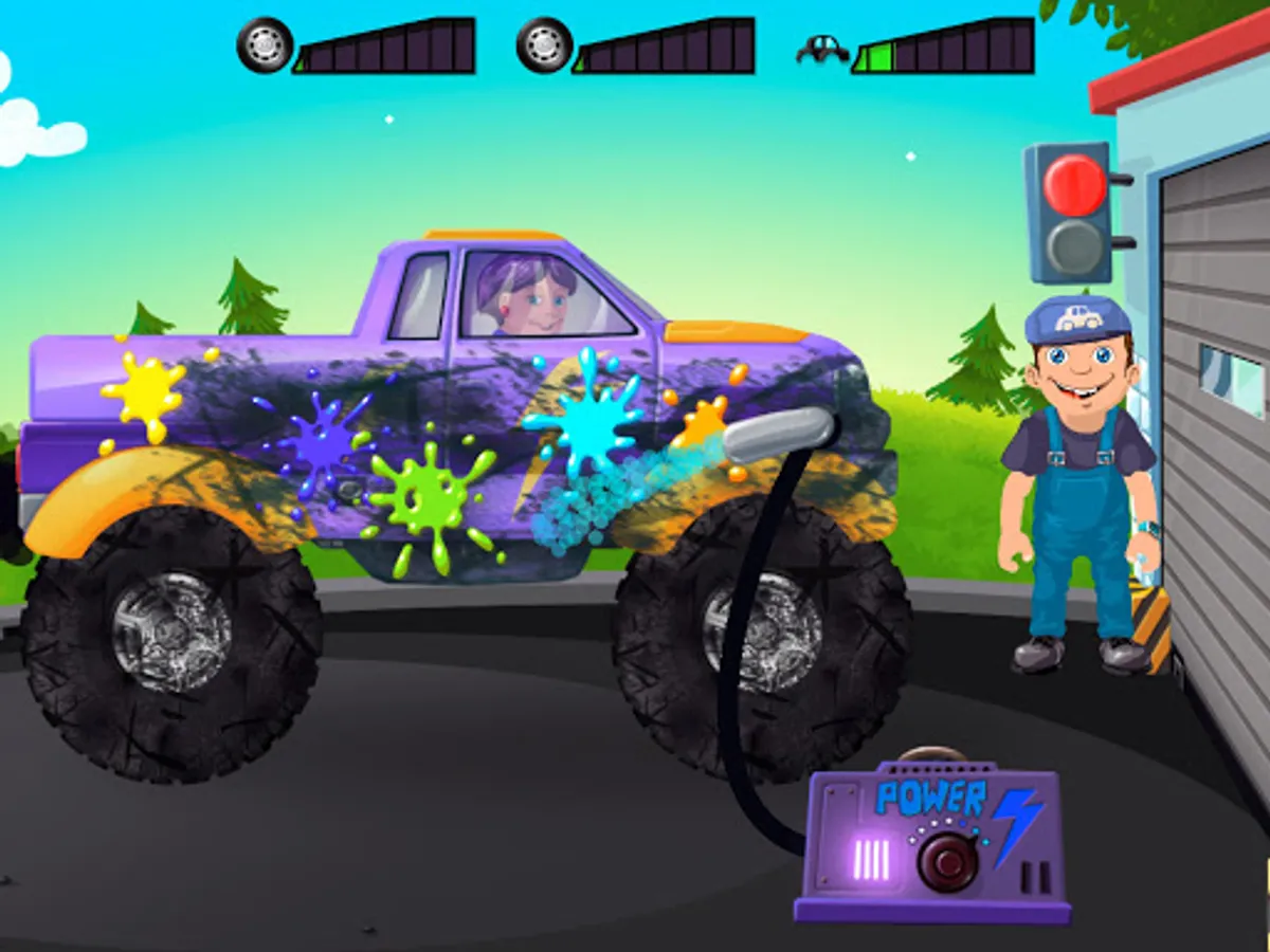 Experiment in your fun laboratory and mix your own super washing foam. Use the mixed liquids in a lot of different funny and cool car wash and bath actions. Clean a lot of different cars using different tools, a sponge and more. You can choose between a lot of amazing and awesome cars and vehicles, like for example a racing car, a fire truck, a police car, a school bus, a tractor, an adventure off-road truck, a monster truck and many many more cars and vehicles.