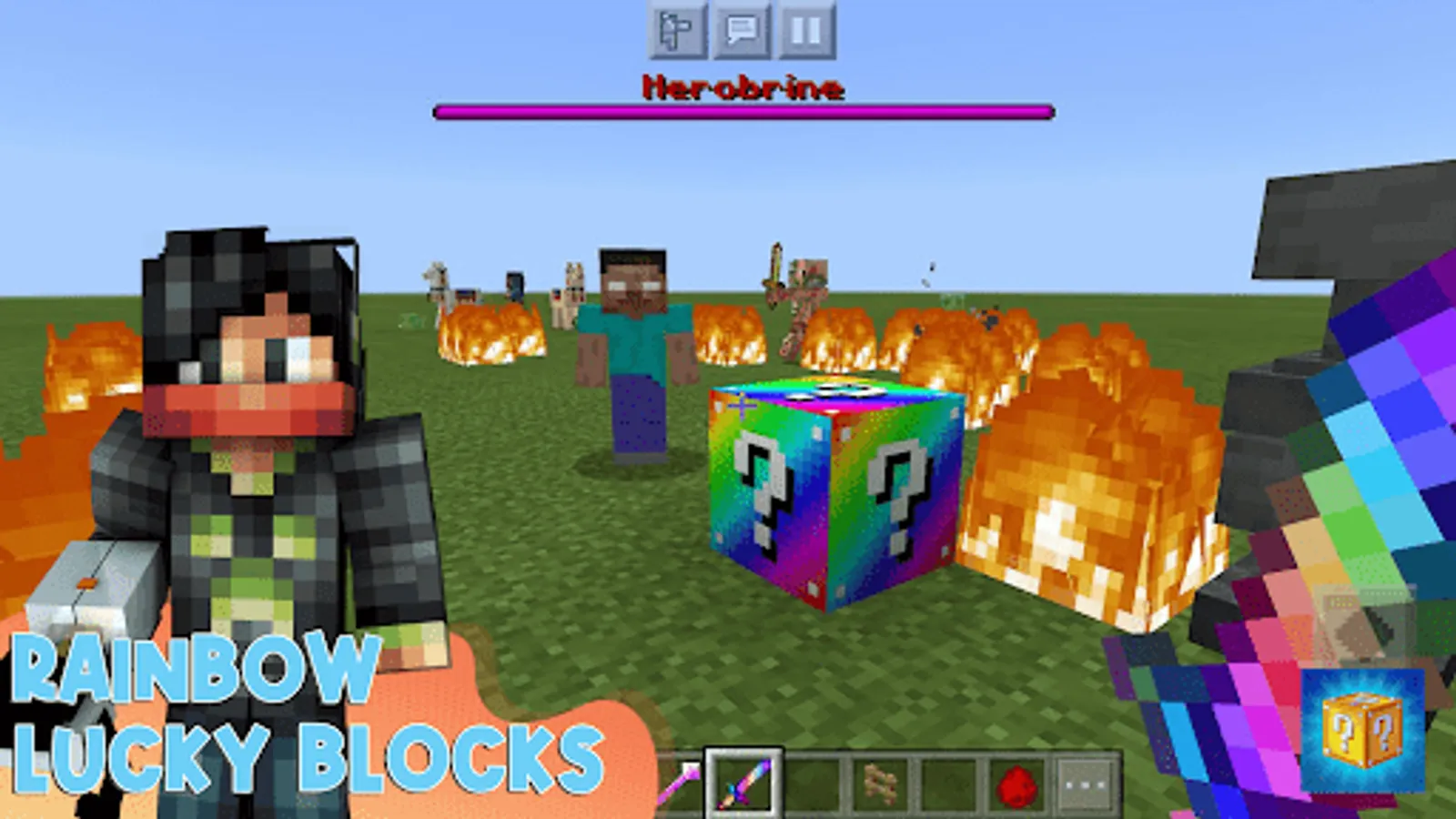 You can download the coolest MCPE Lucky Blocks in our app. We have astral and rainbow Lucky Block Mods and Lucky Block Race Maps, which have pre placed Lucky Blocks on it.